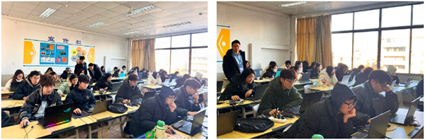 自赛事启动以来,吸引了众多信息工程学院学子的广泛关注与持续参与,最终,共有10支队伍报名参加鸿蒙赛道。在比赛过程中,参赛学生们展现了其扎实的专业知识和技能水平,彰显了当代大学生的优秀精神风貌。青岛恒星软创科技有限公司项目经理王丰钦以及Topay钱包科技技术青岛恒星讲师王大冠,作为现场监考技术人员,助力比赛顺利召开。